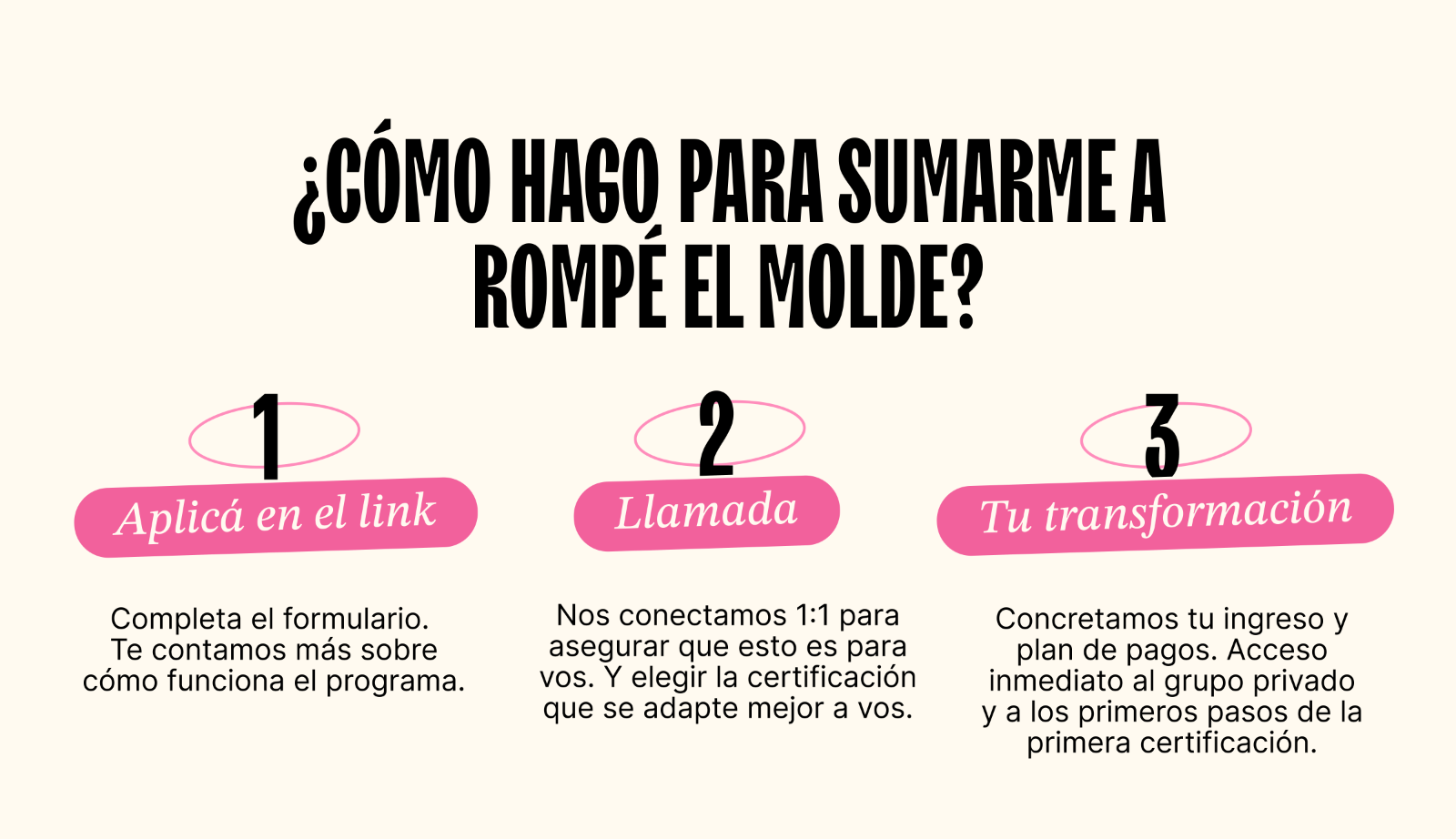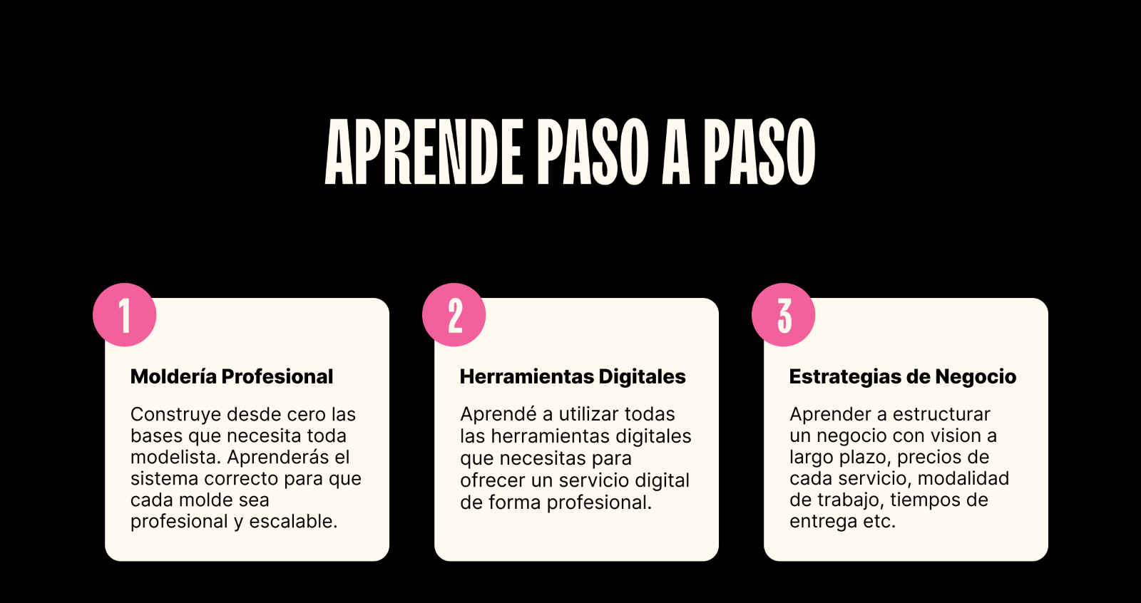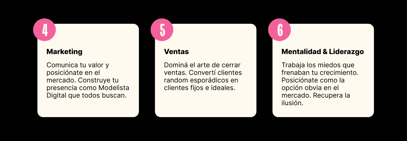 Los cupos son limitados. Solo para Modelistas que entienden que para destacar es necesario hacer una transformación integral. Y acá vas a tenerlo con acompañamiento real.